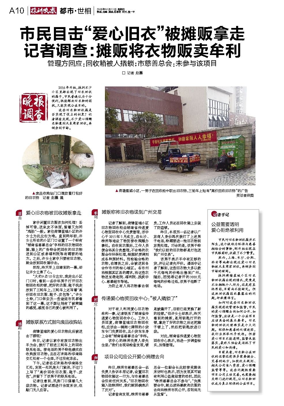 市民目击“爱心旧衣”被摊贩拿走 记者调查:摊贩将衣物贩卖牟利