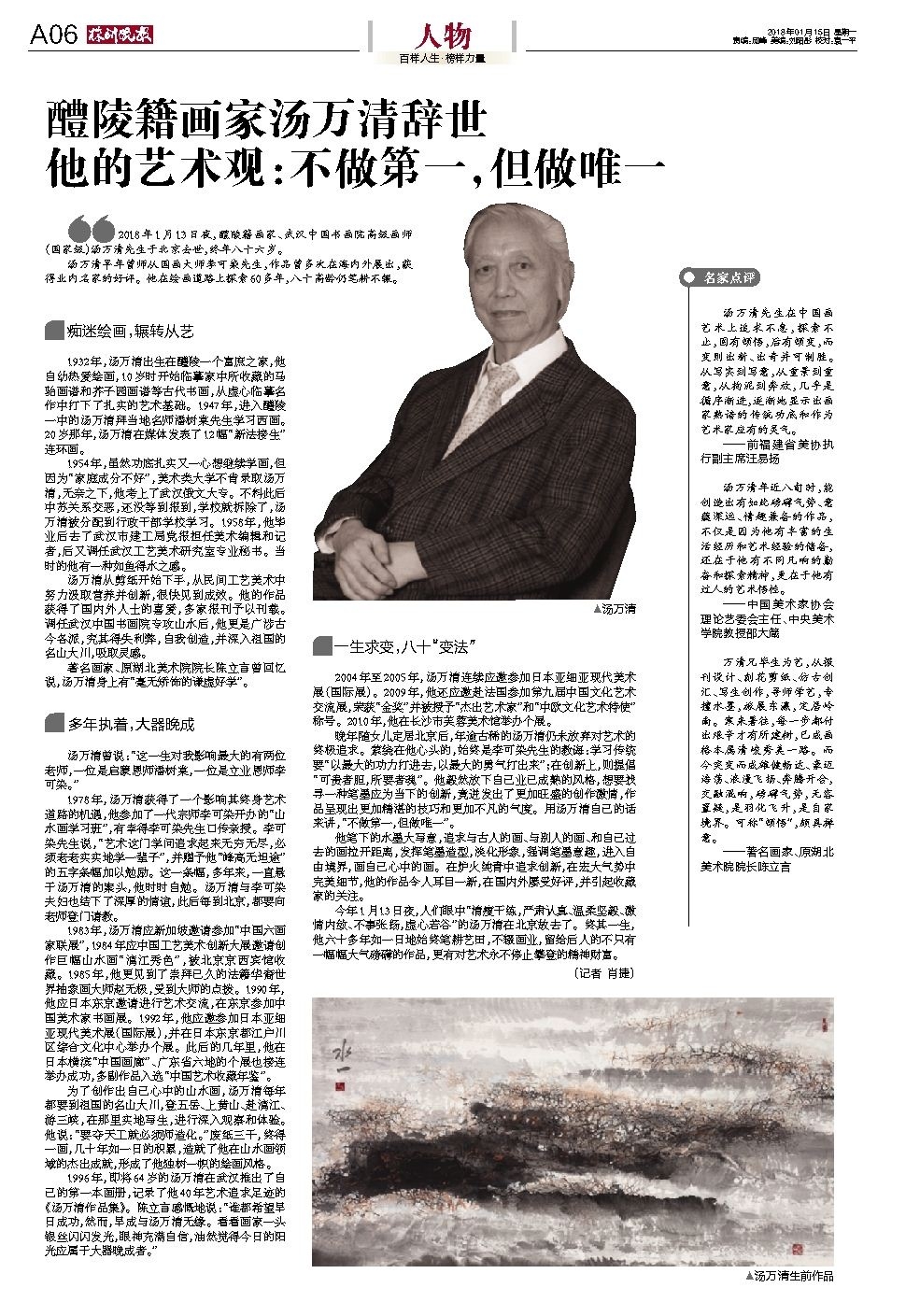 醴陵籍画家汤万清辞世 他的艺术观:不做第一,但做唯一