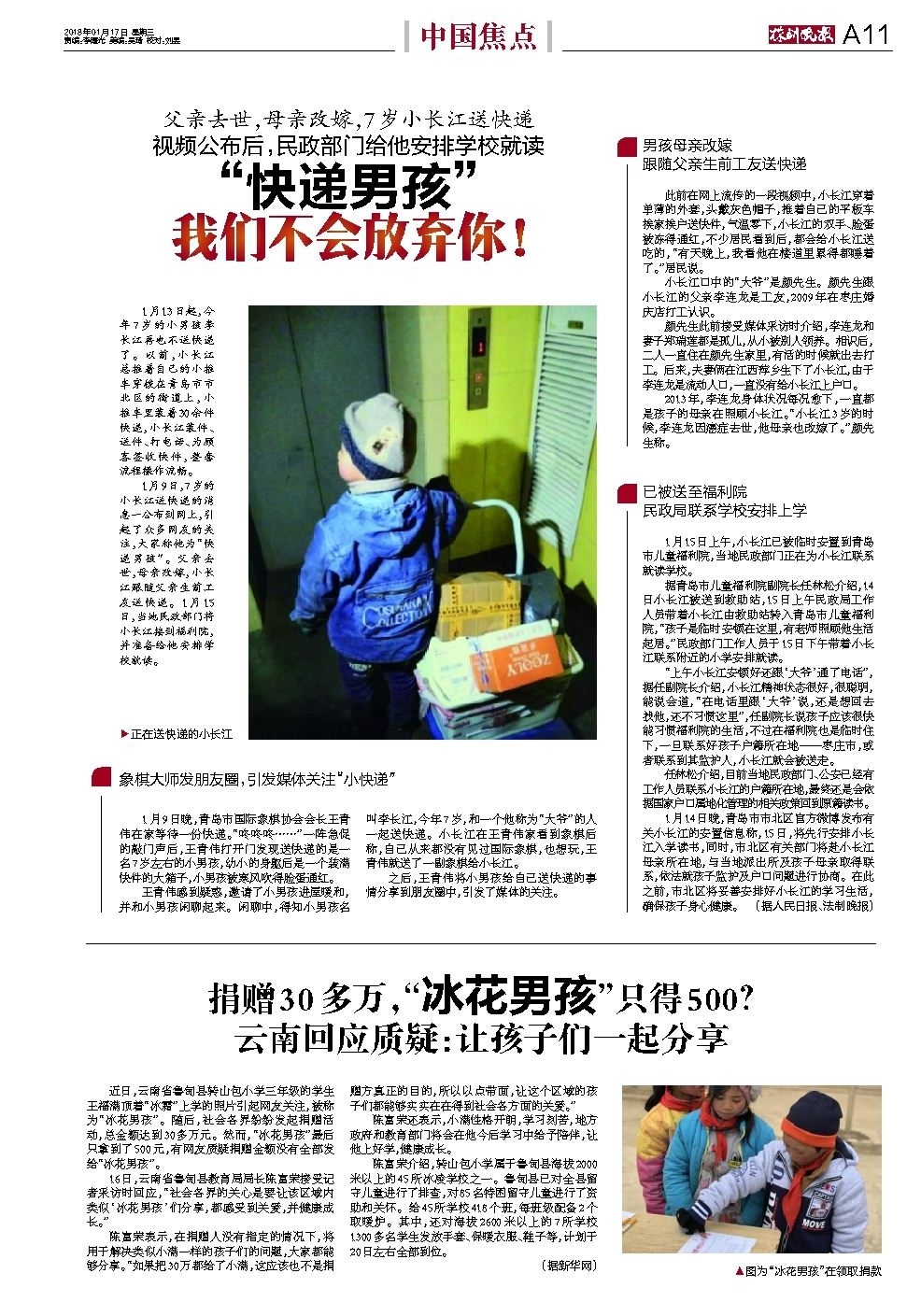 捐赠30多万,“冰花男孩”只得500? 云南回应质疑:让孩子们一起分享