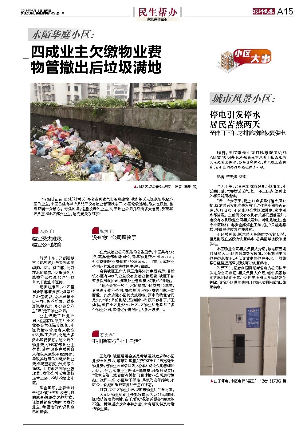 四成业主欠缴物业费物管撤出后垃圾满地