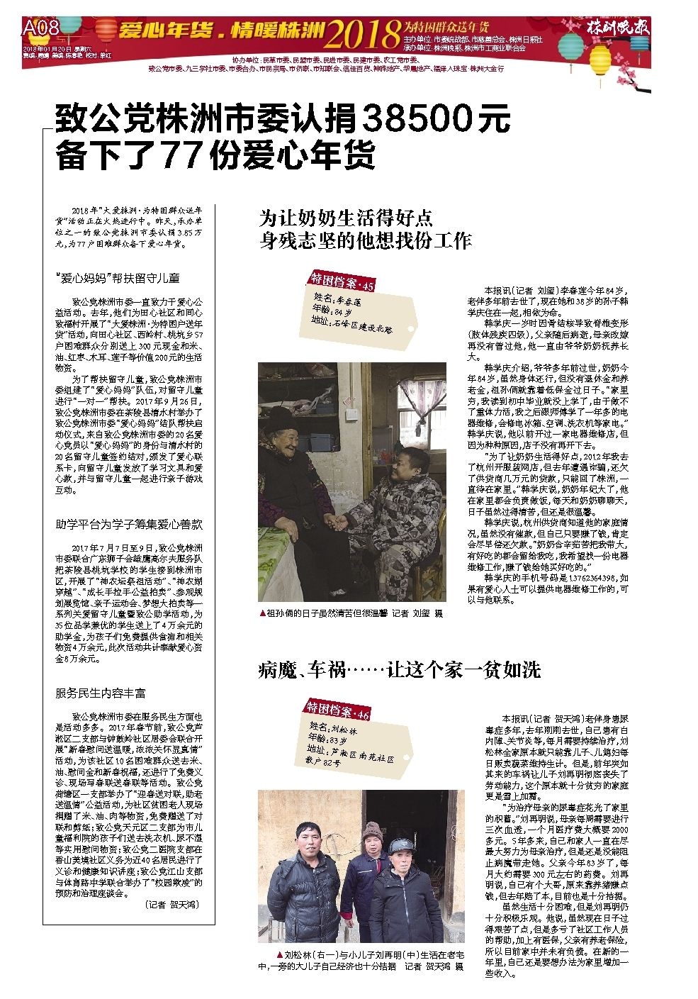 致公党株洲市委认捐38500元备下了77份爱心年货