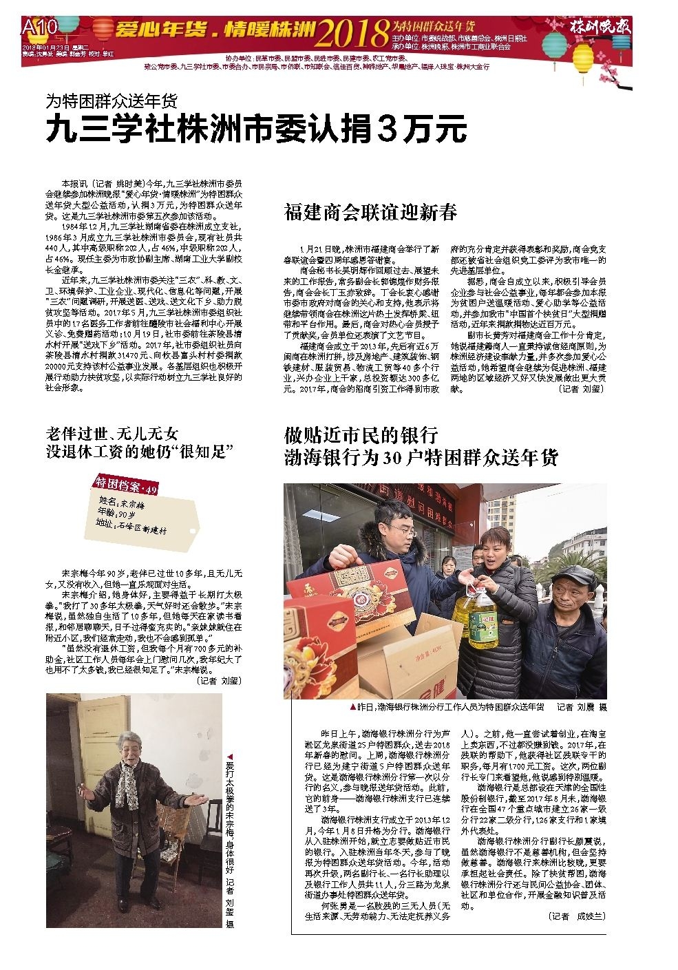 做贴近市民的银行渤海银行为30户特困群众送年货