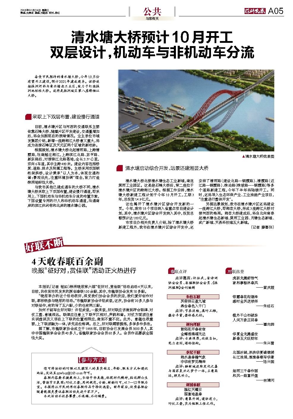 清水塘大桥预计10月开工双层设计,机动车与非机动车分流