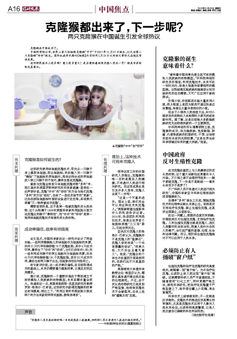 克隆猴的诞生 意味着什么?