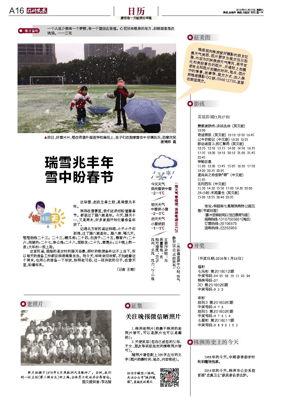 2018年01月27日《株洲晚报》