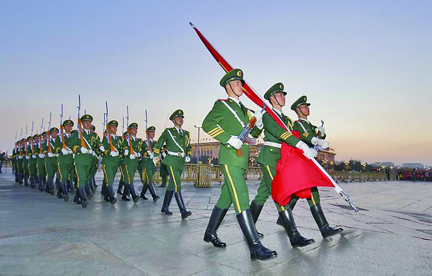 ▲2017年12月31日下午,武警天安门国旗护卫队完成天安门广场降旗仪式