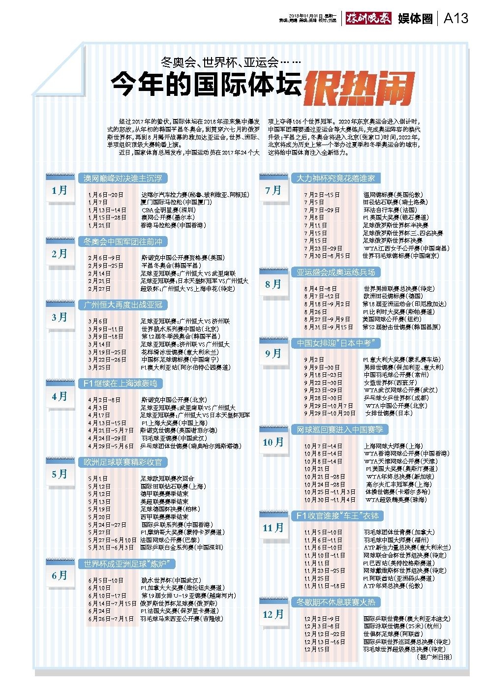 经过2017年的蛰伏,国际体坛在2018年迎来集中爆发式的怒放,从年初的韩国平昌冬奥会,到贯穿六七月的俄罗斯世界杯,再到8月揭开战幕的雅加达亚运会,世界、洲际、单项组织顶级大赛轮番上演。