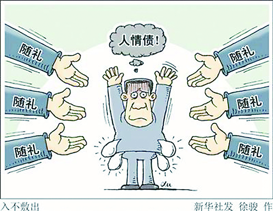 ●点评 人情消费,本是为了增进亲友间的感情,然而,过重的人情支出却事与愿违,冲淡感情,还增加负担,难怪一些在外打拼的游子发出“不敢回家过年”的感慨。古人常说,“千里送鹅毛,礼轻情义重。”还是让人情回归礼尚往来的本意为好。