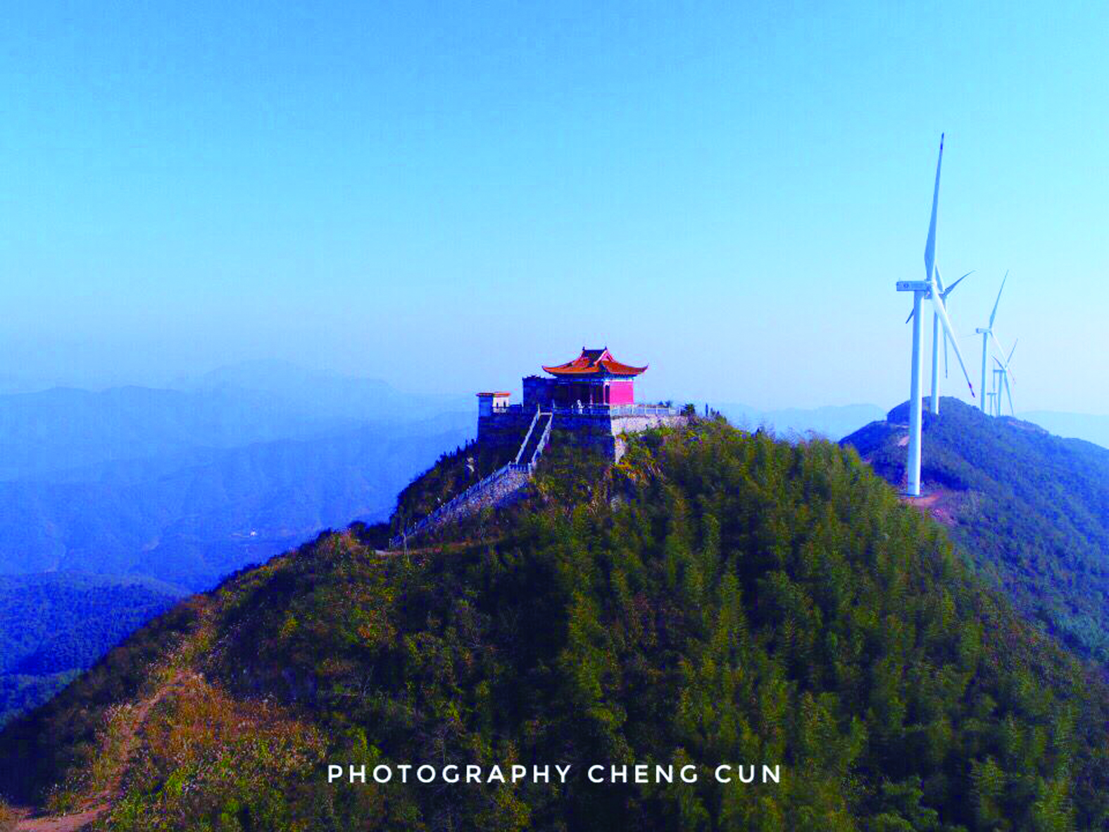 ◀城村拍摄的凤凰山发电风车
