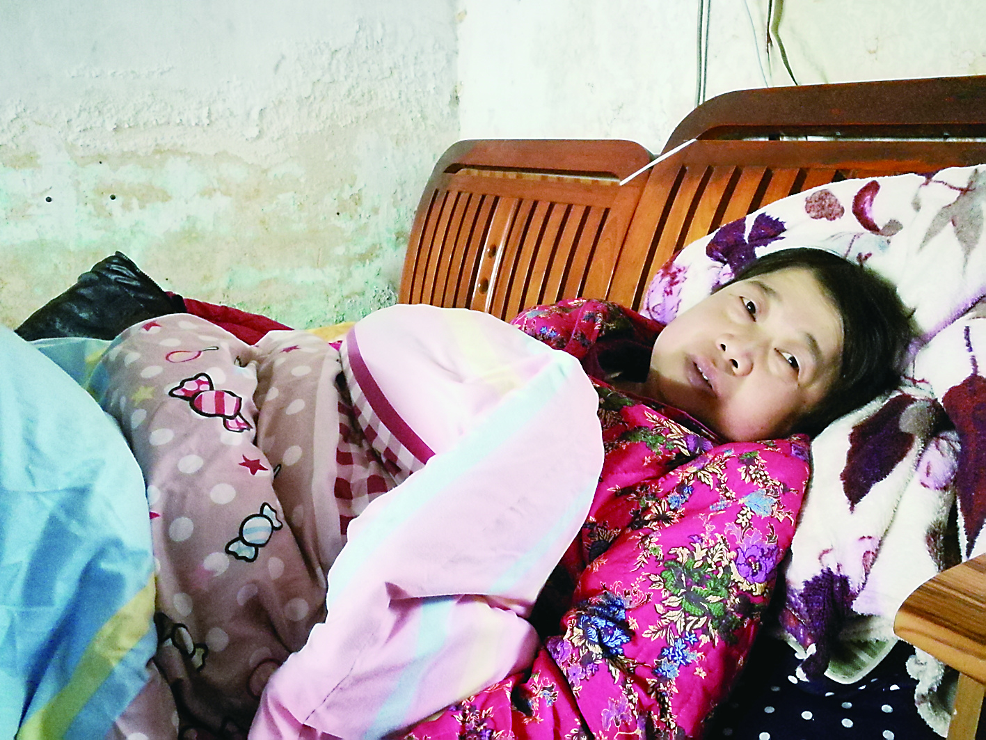 ◀卧床养病的张献珍 记者 成姣兰 摄