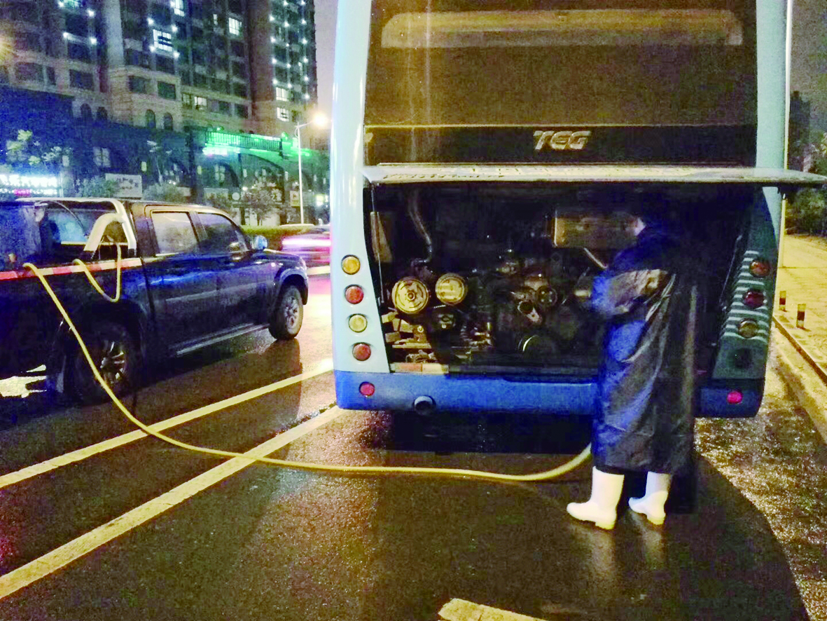 ▲气温骤降,公交部门对车辆添加防冻液 受访单位供图