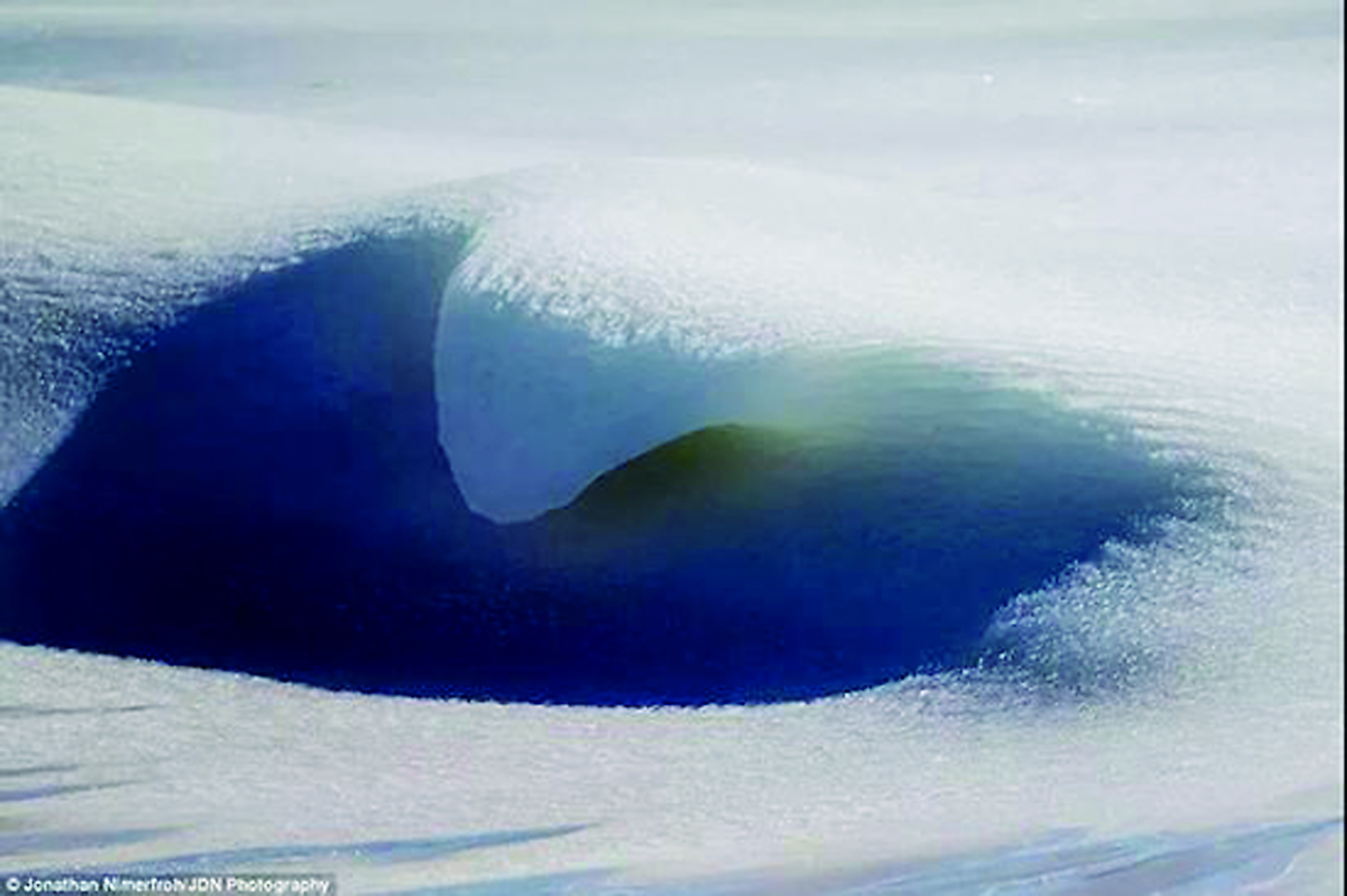 ▲马萨诸塞州的海浪都被冻成了冰雕