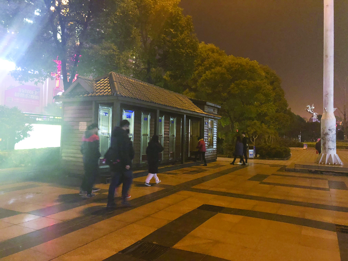 ▲受诸多因素影响,中心广场建设的是可移动公厕 伍靖雯 摄