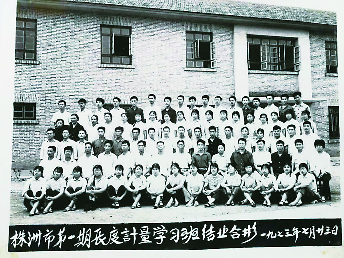 照片拍摄于1973年,是株洲市第一期长度计量学习班结业合影。该学习班历时两月多,来自企业和学校的十余名任课老师讲义自编,义务授课,学员们早来晚归,学习自觉,热情高涨。几十年来,这些学生成为了我市企业质量技术监督工作中的一批骨干力量
