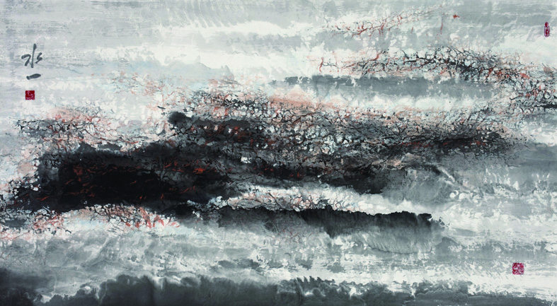 万清兄毕生为艺,从报刊设计、刻花剪纸、仿古创汇、写生创作,寻师学艺,专擅水墨,旅展东瀛,定居岭南。寒来暑往,每一步都付出艰辛才有所建树,已成画格本属清峻秀美一路。而今突变而成雄健畅达、豪迈浩荡、浪漫飞扬、奔腾开合,交融混响,磅礴气势,无容置疑,是羽化飞升,是自家境界。可称“顿悟”,颇具禅意。