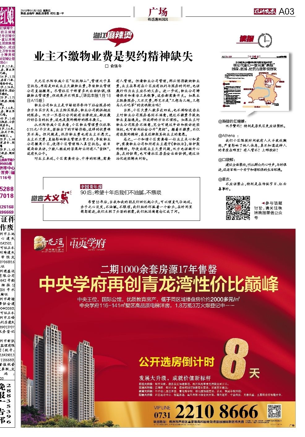 天元区水陌华庭小区“垃圾堆山”,管理处于真空状态,原因是四成业主欠缴物业费,导致物业管理公司直接撤离。尽管社区干部曾多次出面协调,催缴物业管理费,但效果并不明显。(详见本报1月18日A15版)