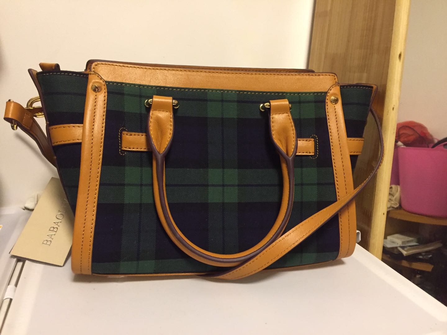 全新芭宝利亚格纹包包,冬天搭配大衣不二之选,尺寸中号,材质牛皮加帆布,全新带吊牌,120元转。微信:18501098