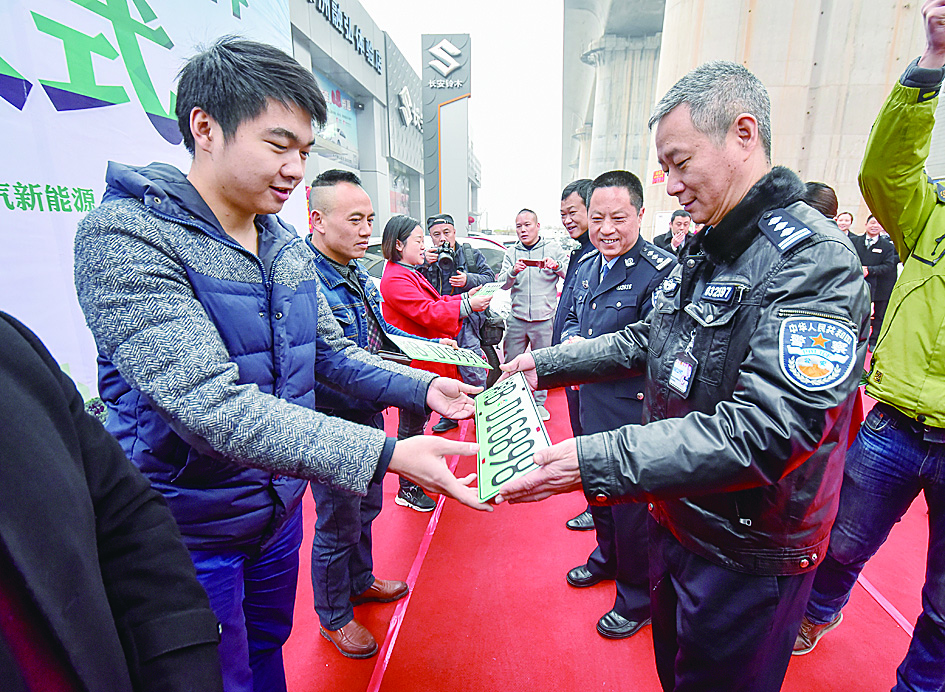▲1月19日,株洲新能源汽车号牌正式启用。图为号牌发放现场 记者 刘震 摄