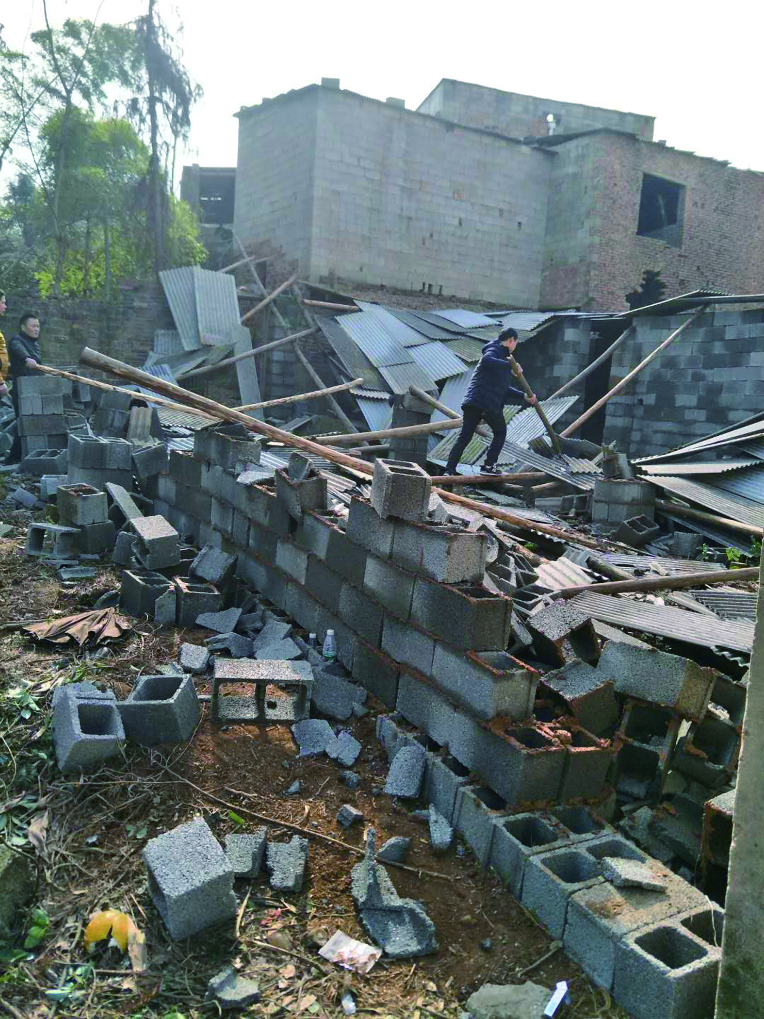 马家河街道治违控违中队昨出动,两栋刚完工“新房”被拆