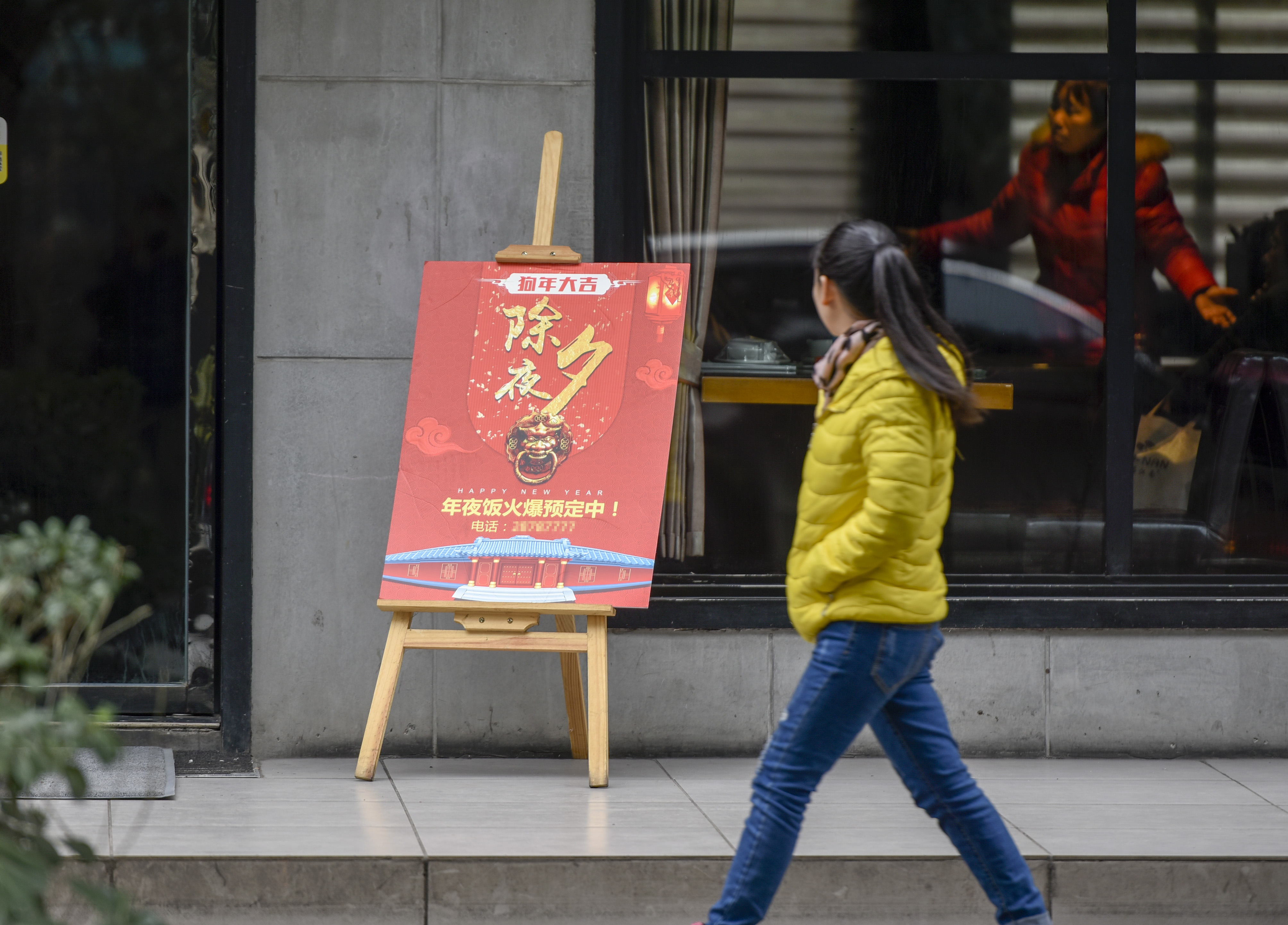 ▲1月23日,市内各大酒店餐馆外,立着承办年夜饭的招牌