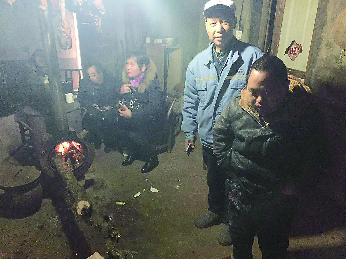 昨日,记者来到文醉家中看到,他家房屋十分破旧,为了节约用电,家中只开了一盏电灯,天气寒冷一家人围在火炉边烧柴取暖。