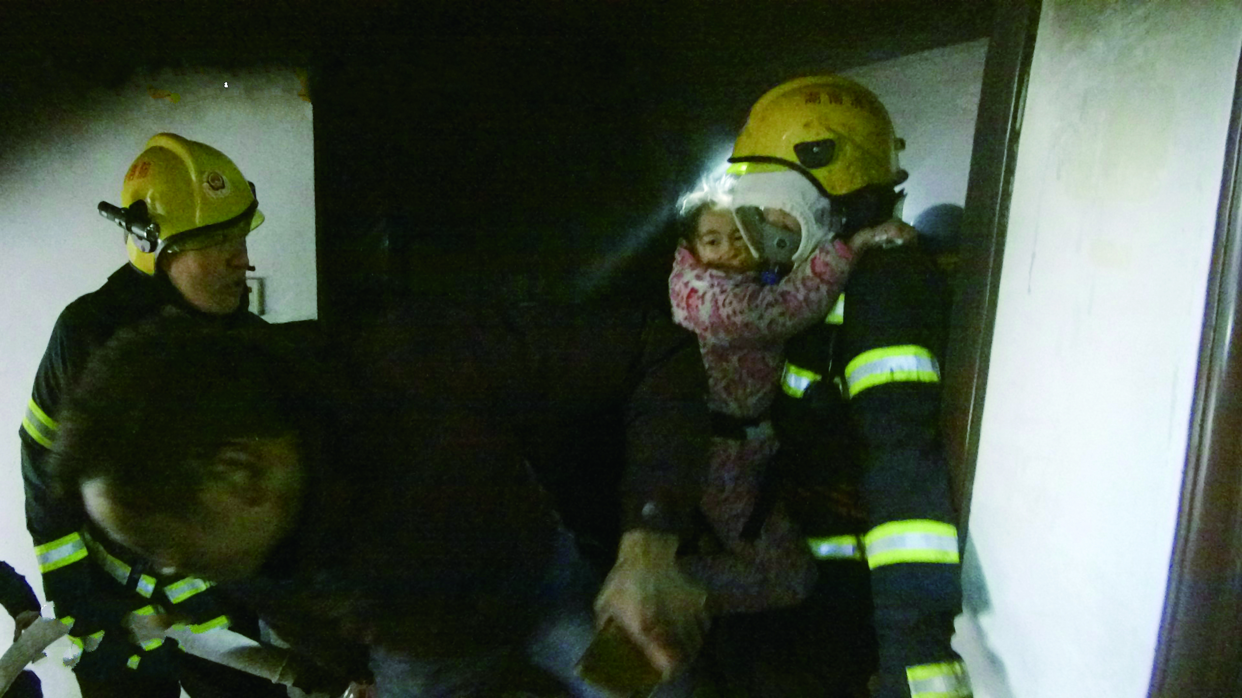 ▲消防员将被困女孩抱出火场 消防部门供图