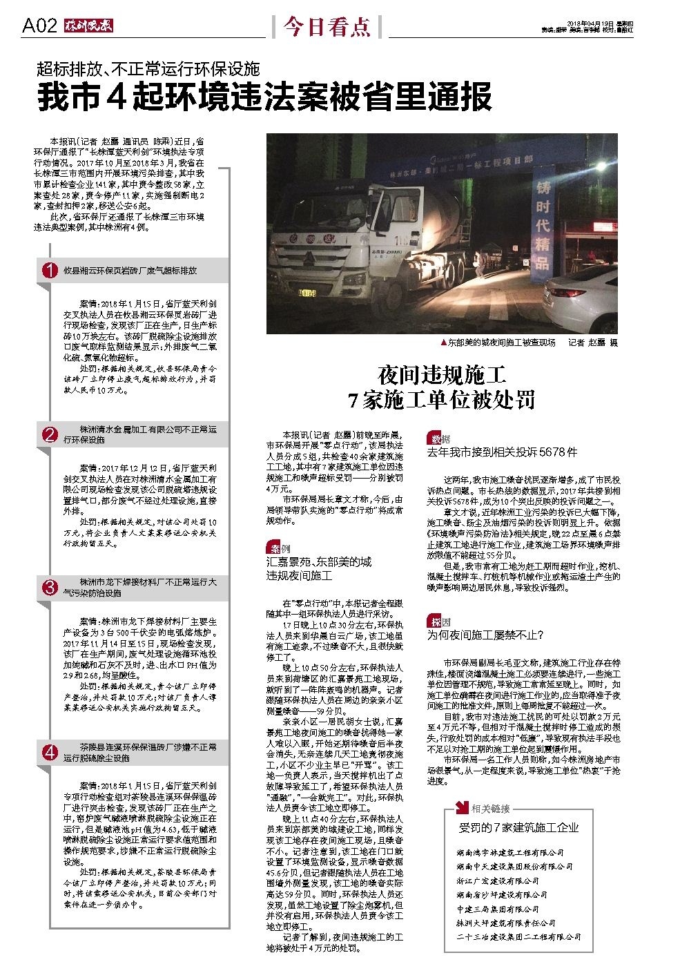夜间违规施工 7家施工单位被处罚