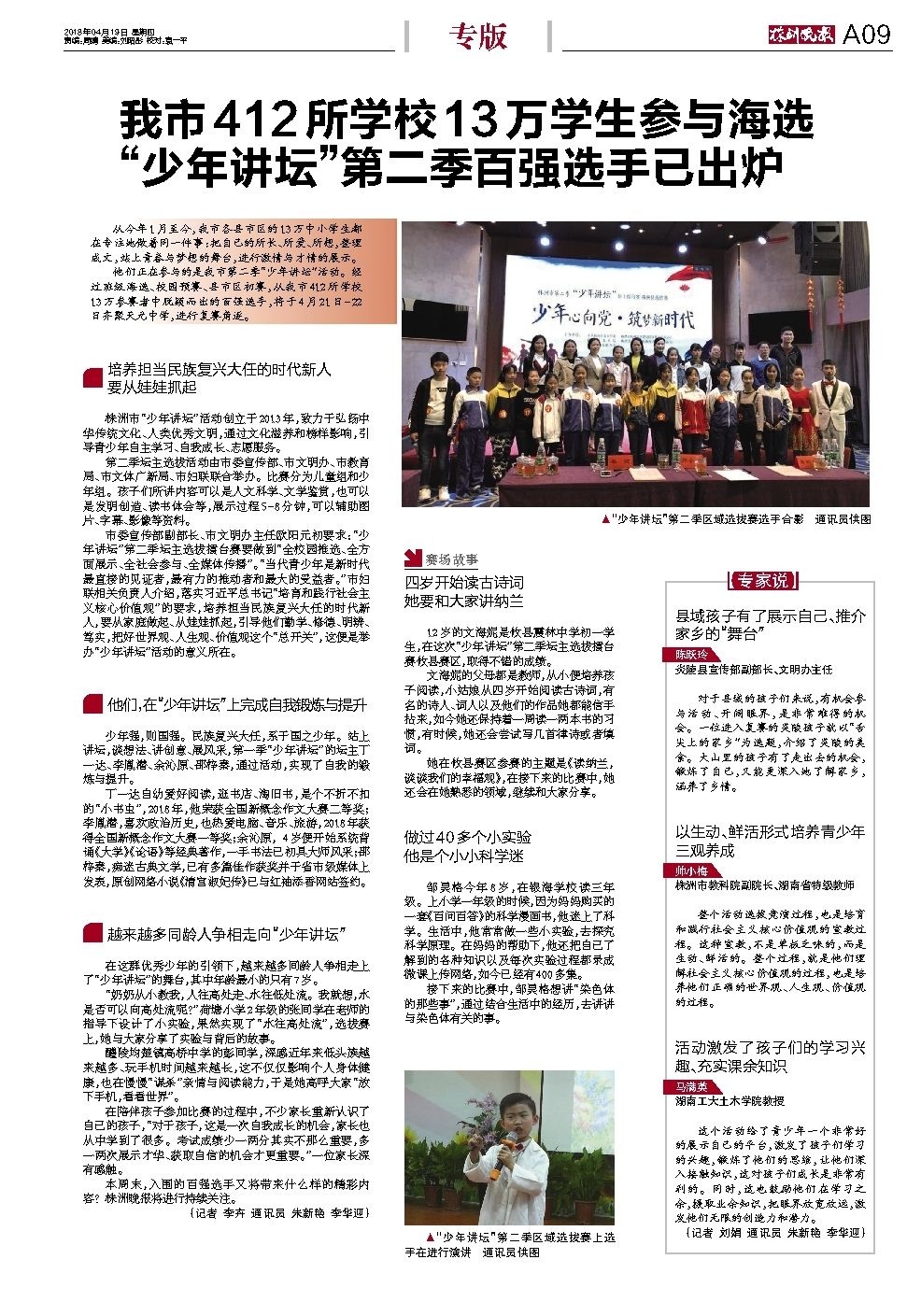 我市412所学校13万学生参与海选 “少年讲坛”第二季百强选手已出炉