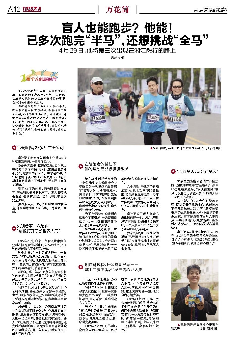盲人也能跑步?他能! 已多次跑完“半马”,还想挑战“全马”