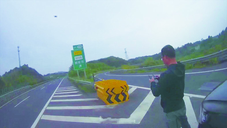 本报讯(记者 刘玺 通讯员 徐天雄 陈志永)高速公路上车速快,非紧急情况下禁止随意停车。然而,赵某不仅在平汝高速醴陵段违法停车,他还站在导流线上操作无人机航拍。
