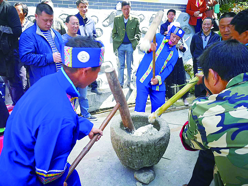 ◀图为畲民们在打糍粑 通讯员供图