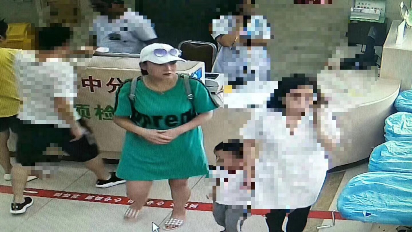 ▲唐女士说,穿绿色衣服、戴帽子的女子是肇事者(医院监控截图)