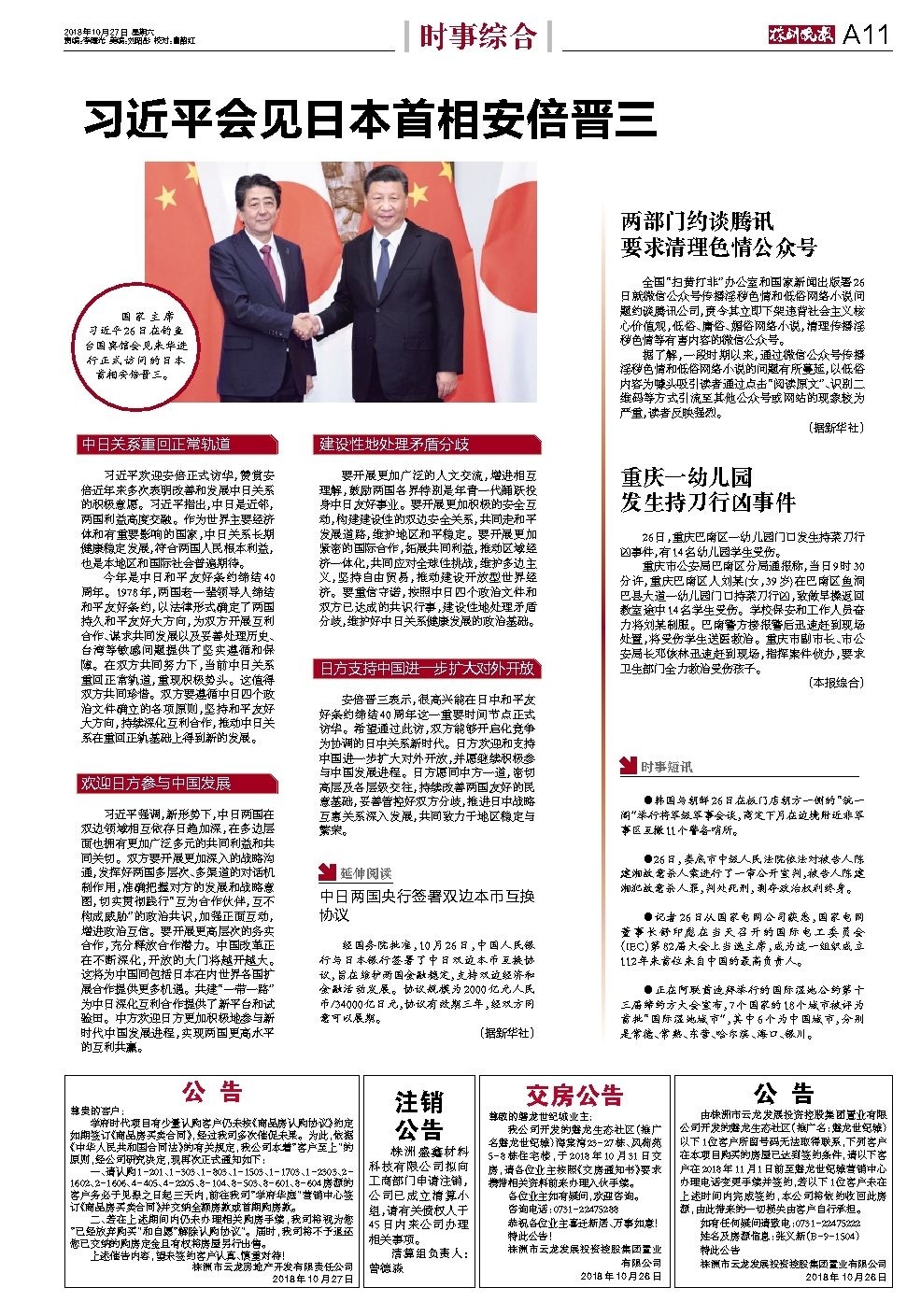 2018年10月27日《株洲晚报》