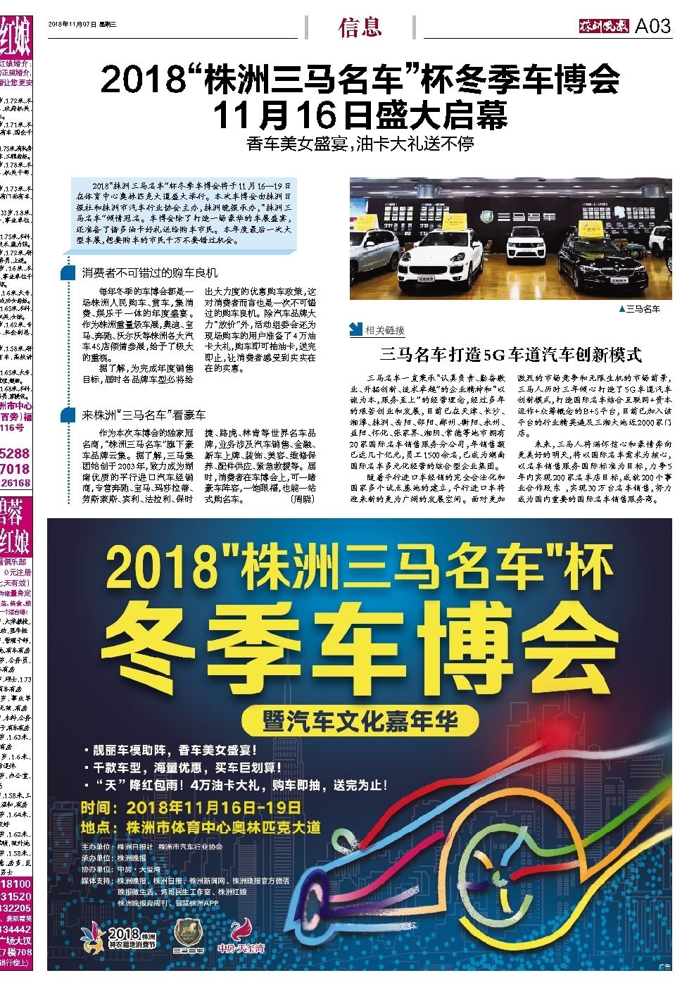 2018“株洲三马名车”杯冬季车博会 11月16日盛大启幕