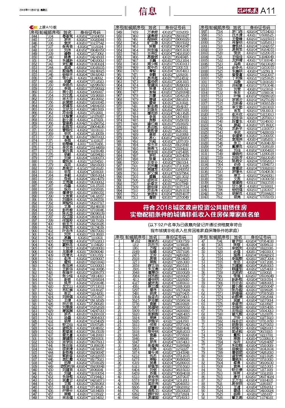 符合2018城区政府投资公共租赁住房 实物配租条件的城镇非低收入住房保障家庭名单