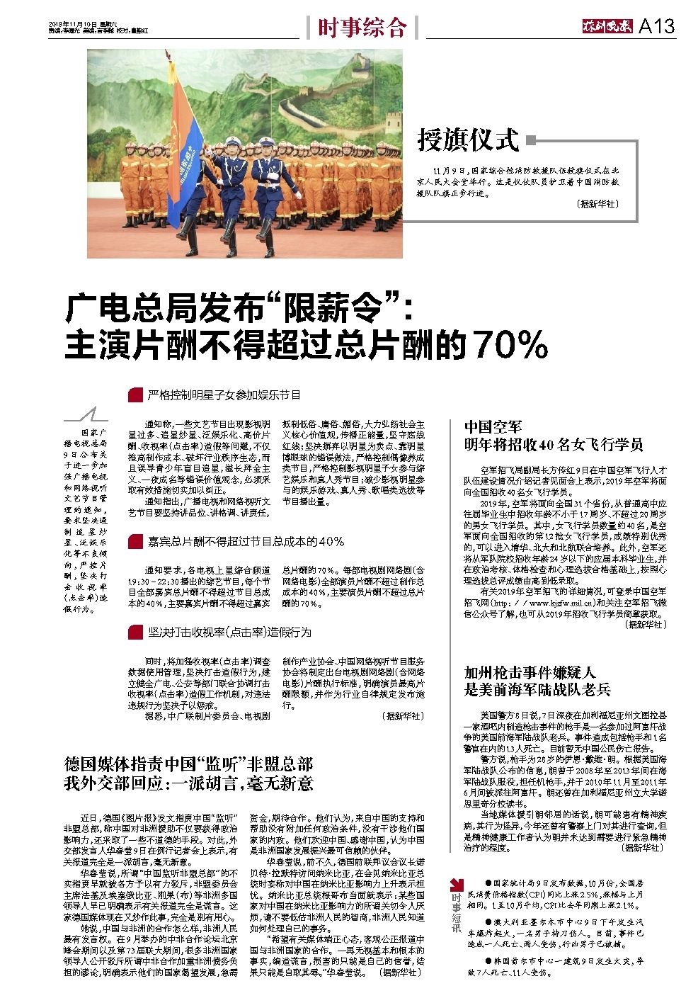 广电总局发布“限薪令”: 主演片酬不得超过总片酬的70%