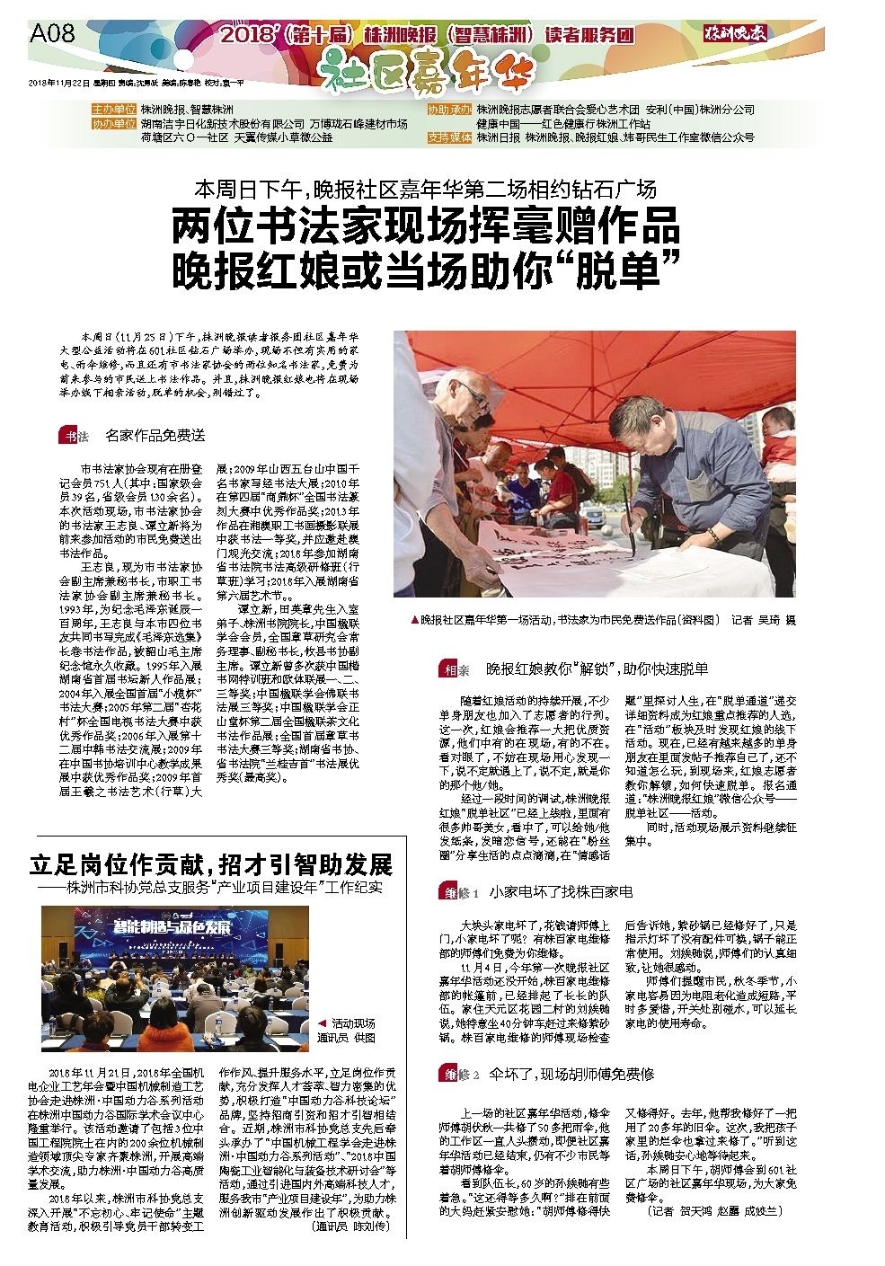 两位书法家现场挥毫赠作品晚报红娘或当场助你“脱单”