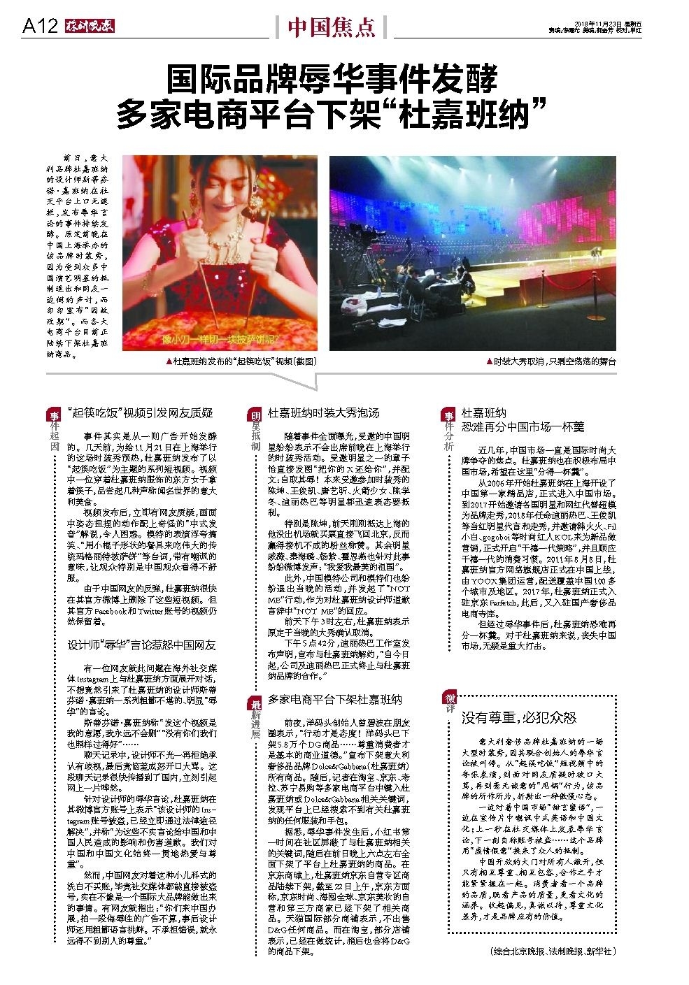 国际品牌辱华事件发酵 多家电商平台下架“杜嘉班纳”