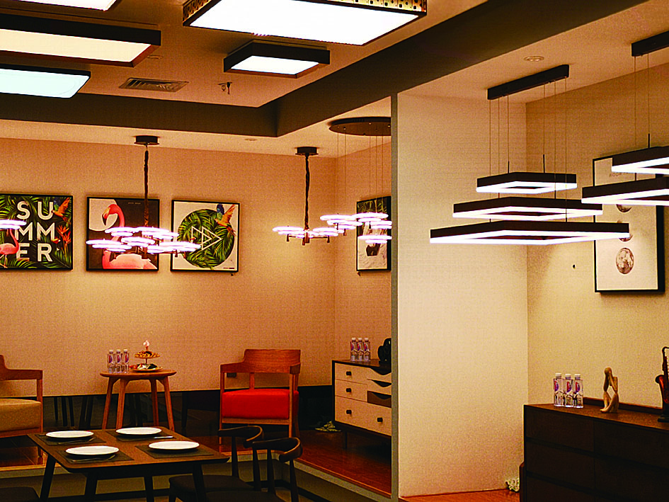 比如贵派获得国家专利的“无级调控”灯具。具体来说,常见灯具一般都有固定功率或分级调光功能,而贵派的这种灯具,可以实现从40W-200W的随心调控,并可通过色温调控切换暖光、冷光,满足不同场景对灯光亮度的要求,提供健康合理的灯光布置。