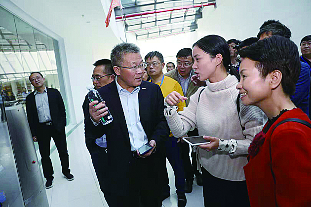 ▶苏宁负责人向嘉宾介绍苏宁布局智慧零售状况