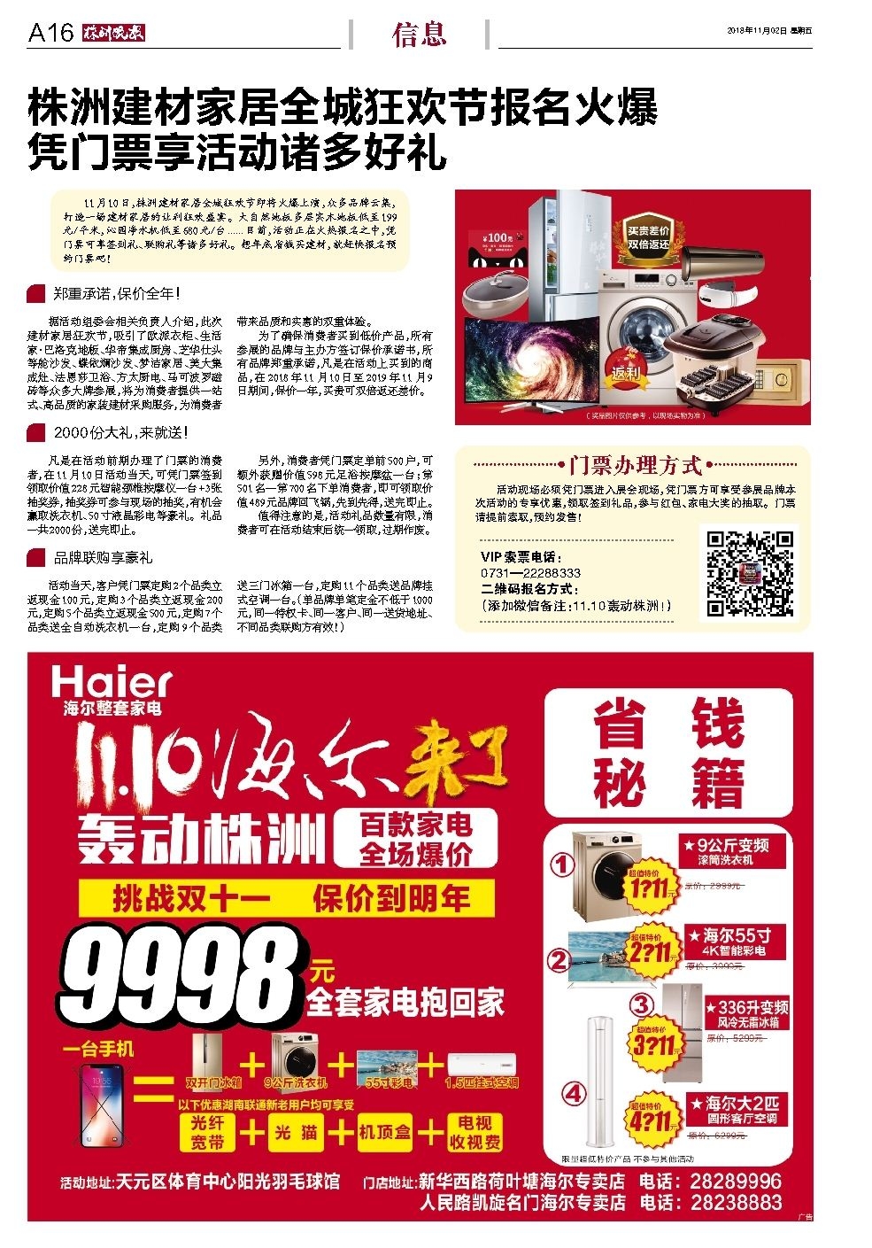 活动现场必须凭门票进入展会现场,凭门票方可享受参展品牌本次活动的专享优惠,领取签到礼品,参与红包、家电大奖的抽取。门票请提前索取,预约发售!