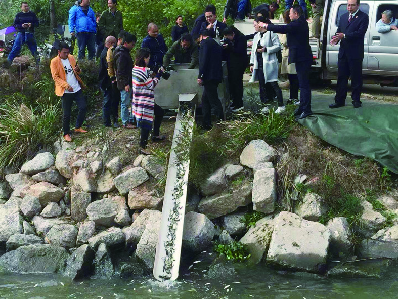 ▲被告人向湘江进行增殖放生 记者 贺天鸿 摄