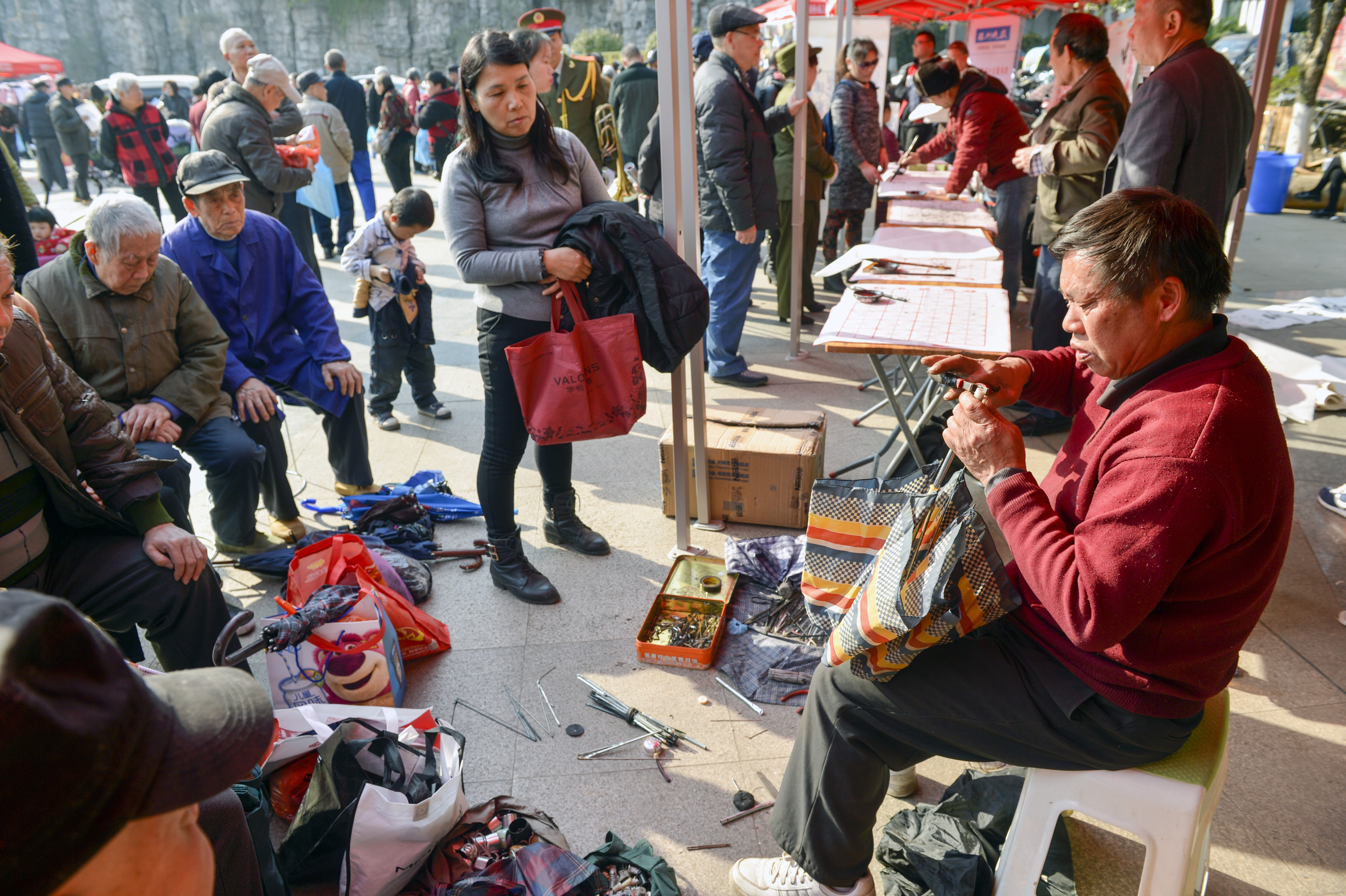过去几年的社区嘉年华活动,胡伏秋师傅凭着一手高超的修伞技术收获不少“粉丝”。社区大妈们拿着自家坏了的伞,在他的摊位前排起了长队。