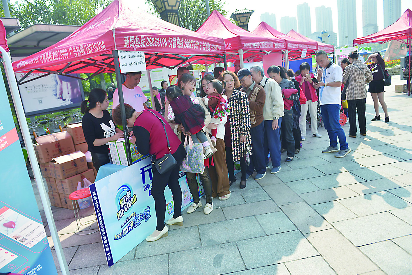▲“氧净”台前市民排长队参与活动