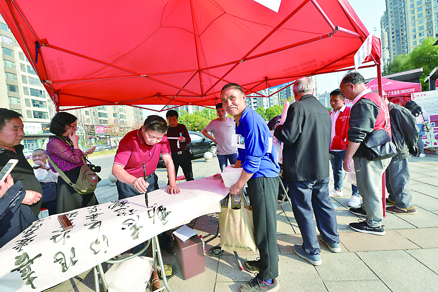 书画名家挥毫泼墨,求字者乐呵呵