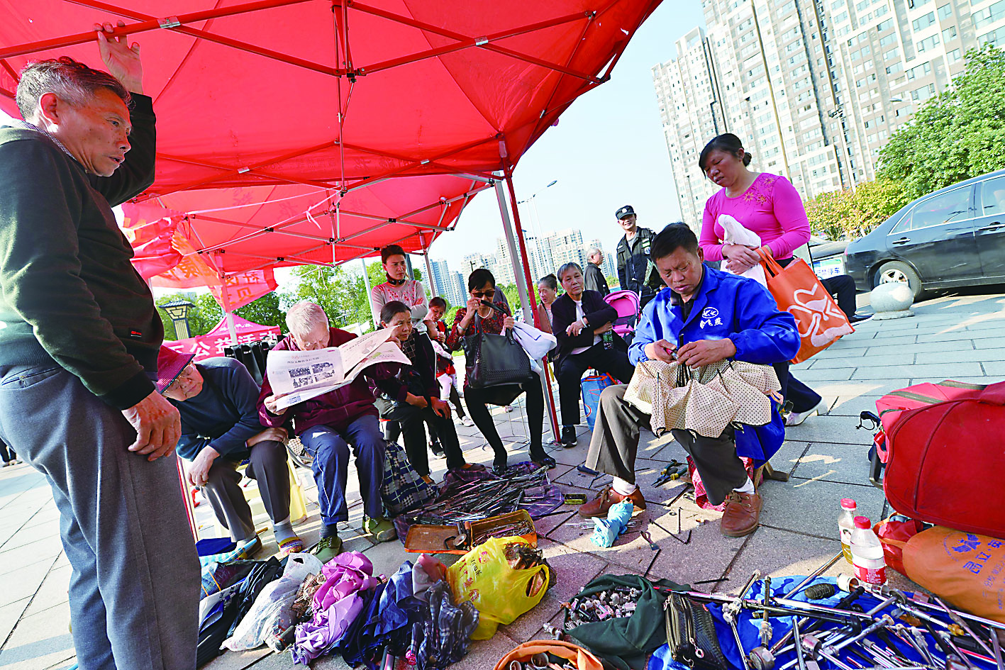 在活动现场,胡伏秋师傅凭着一手高超的修伞技术也收获不少“粉丝”,社区大叔大妈们在他摊位前排起了长队。