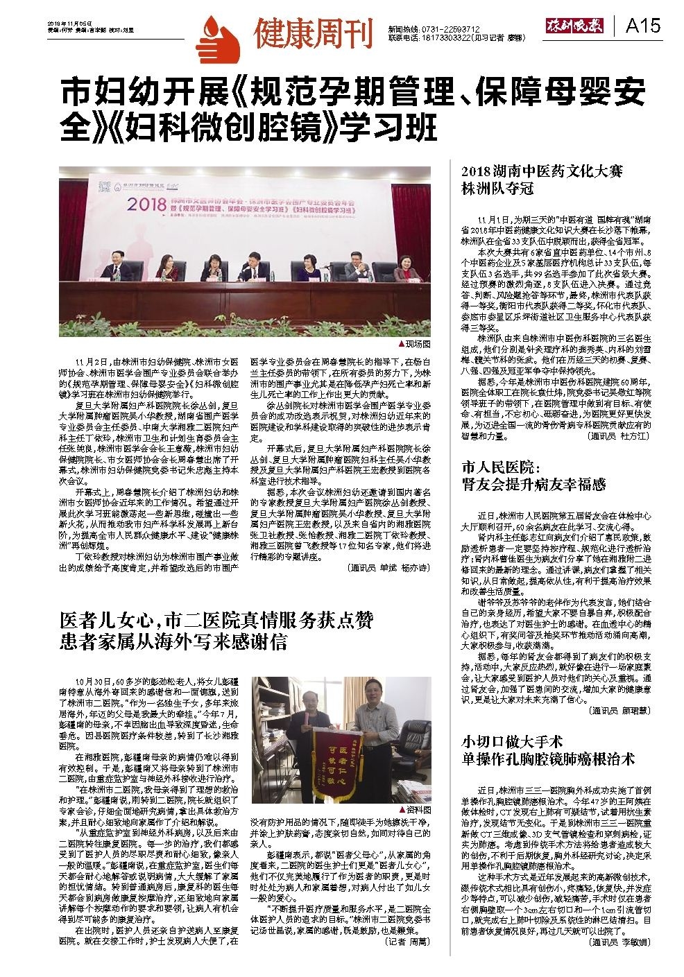 这种手术方式是近年发展起来的高新微创技术,跟传统术式相比具有创伤小,疼痛轻,恢复快,并发症少等特点,可以减少创伤,减轻痛苦,手术时仅在患者右侧胸壁取一个3cm左右切口和一个1cm引流管切口,就完成右上肺叶切除及系统性的淋巴结清扫。目前患者恢复情况良好,再过几天就可以出院了。