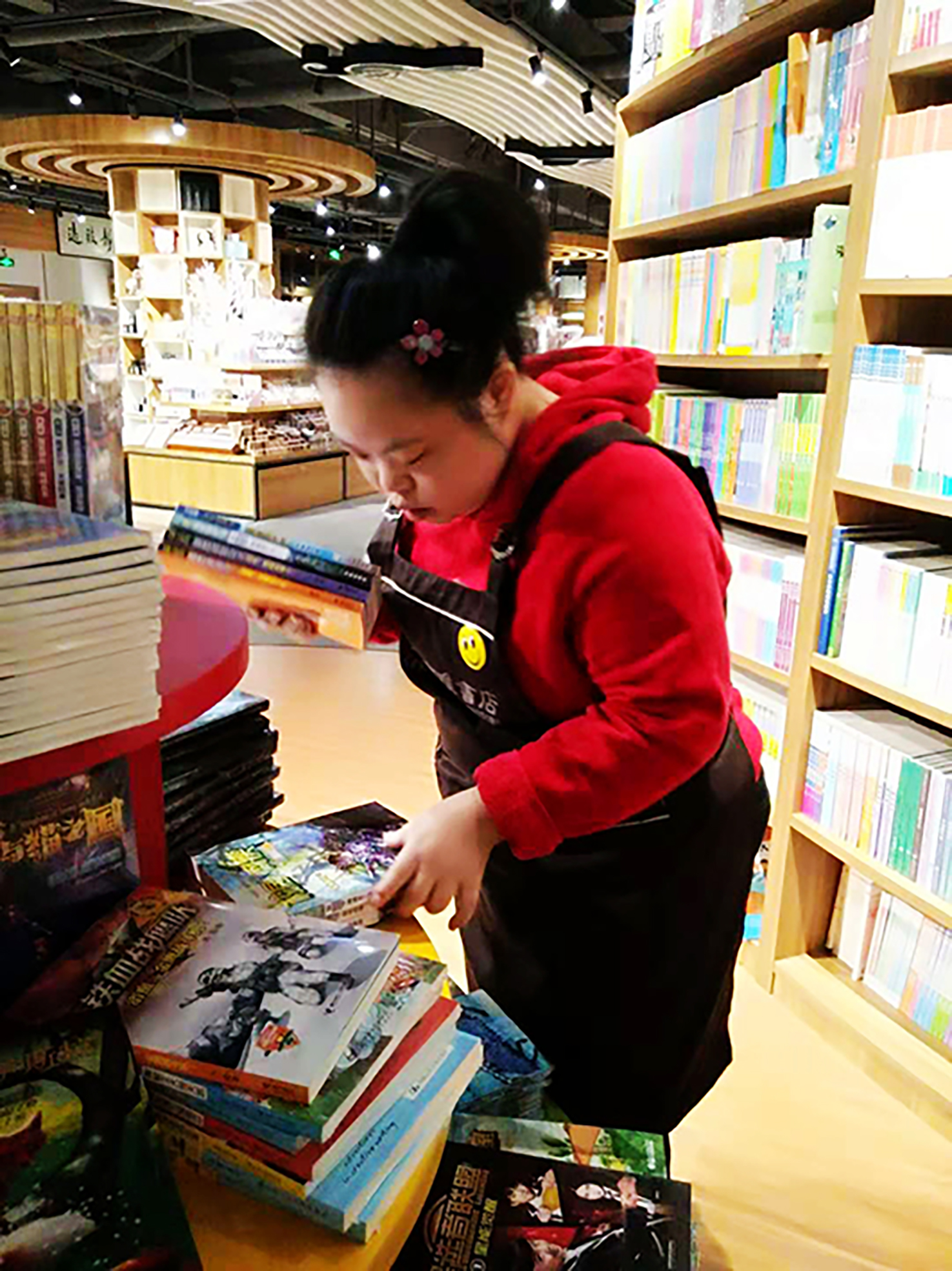 据了解,我市约有2万名心智障碍者,他们因缺乏融入社会的机会,让他们的家庭陷入更大的困境。在上一周的时间里,10多位心智障碍青年在书店学习导购、打包、陈列、打扫卫生、为书籍分类、向顾客做问卷调查等工作。