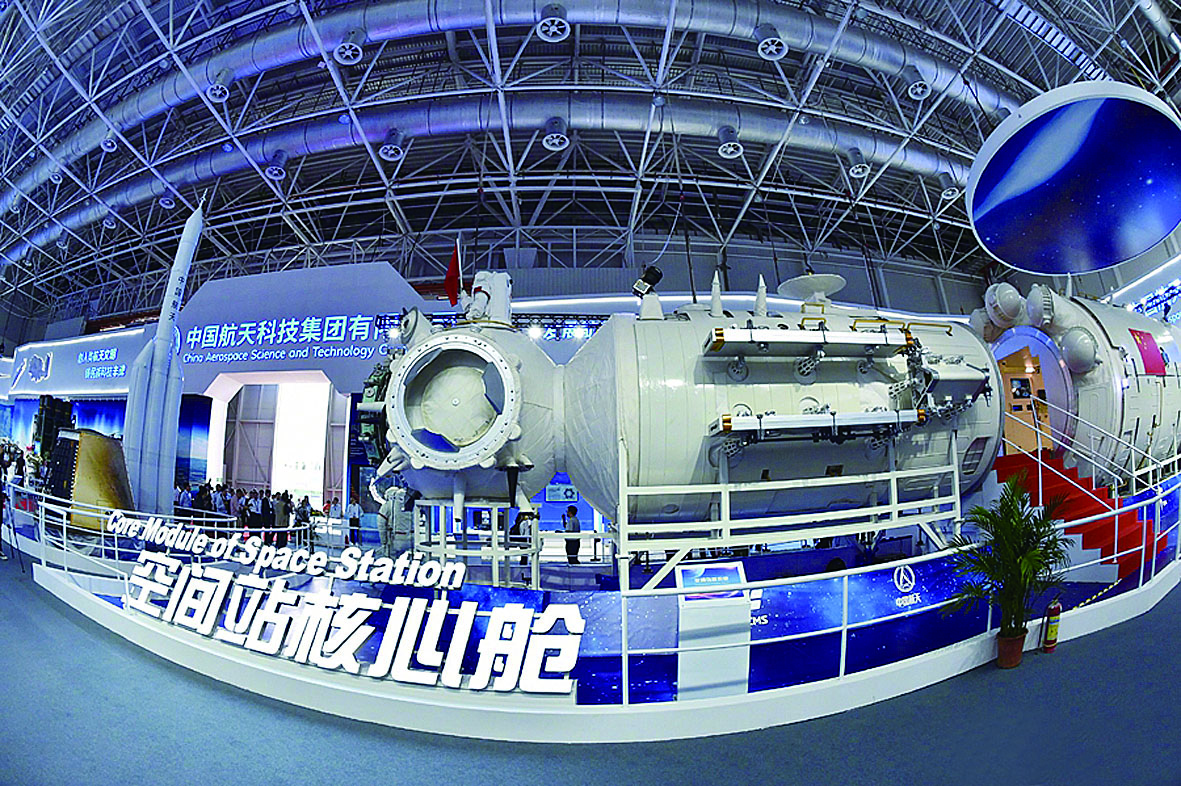 第12届珠海航展6日在珠海举办,由中国航天科技集团有限公司第五研究院研制的空间站核心舱首次对外公开展出。记者在中国航天科技集团有限公司展区看到,很多观众纷纷围着空间站核心舱观看并照相。这是空间站核心舱首次以1:1实物形式(工艺验证舱)出现在公众面前。