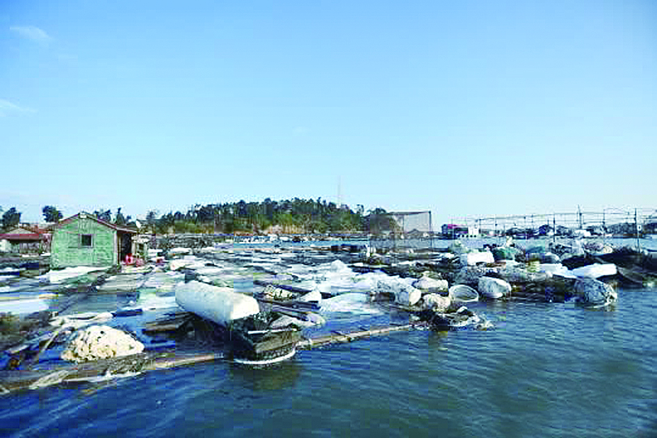 ▲渔排上的泡沫浮材被腐蚀